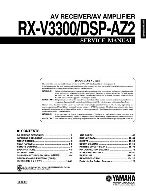 Currently you are looking with regard to an Yamaha Dsp Az2 Rx V3300 Service Manual Repair Guide example of which we provide here inside some kind of document formats such as PDF, Doc, Strength Point, as well as images of which will make it easier for you to create an Yamaha Dsp Az2 Rx V3300 Service Manual Repair Guide yourself. For a more clear look, you are able to open a few examples below. All the illustrations about Yamaha Dsp Az2 Rx V3300 Service Manual Repair Guide with this web site, we get from many sources so you could create a better document of your own.